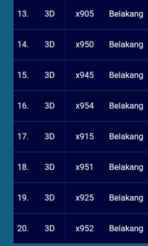 Rumus Angka Mati berdasarkan kepala harian | 07 08 09 10 18 19 20 21 29 31 32 40 42 43 49 50 51 53 60 61 62 63 64 65 71 72 73 74 75 76 82 83 84 85 87 93 95 96 98 |