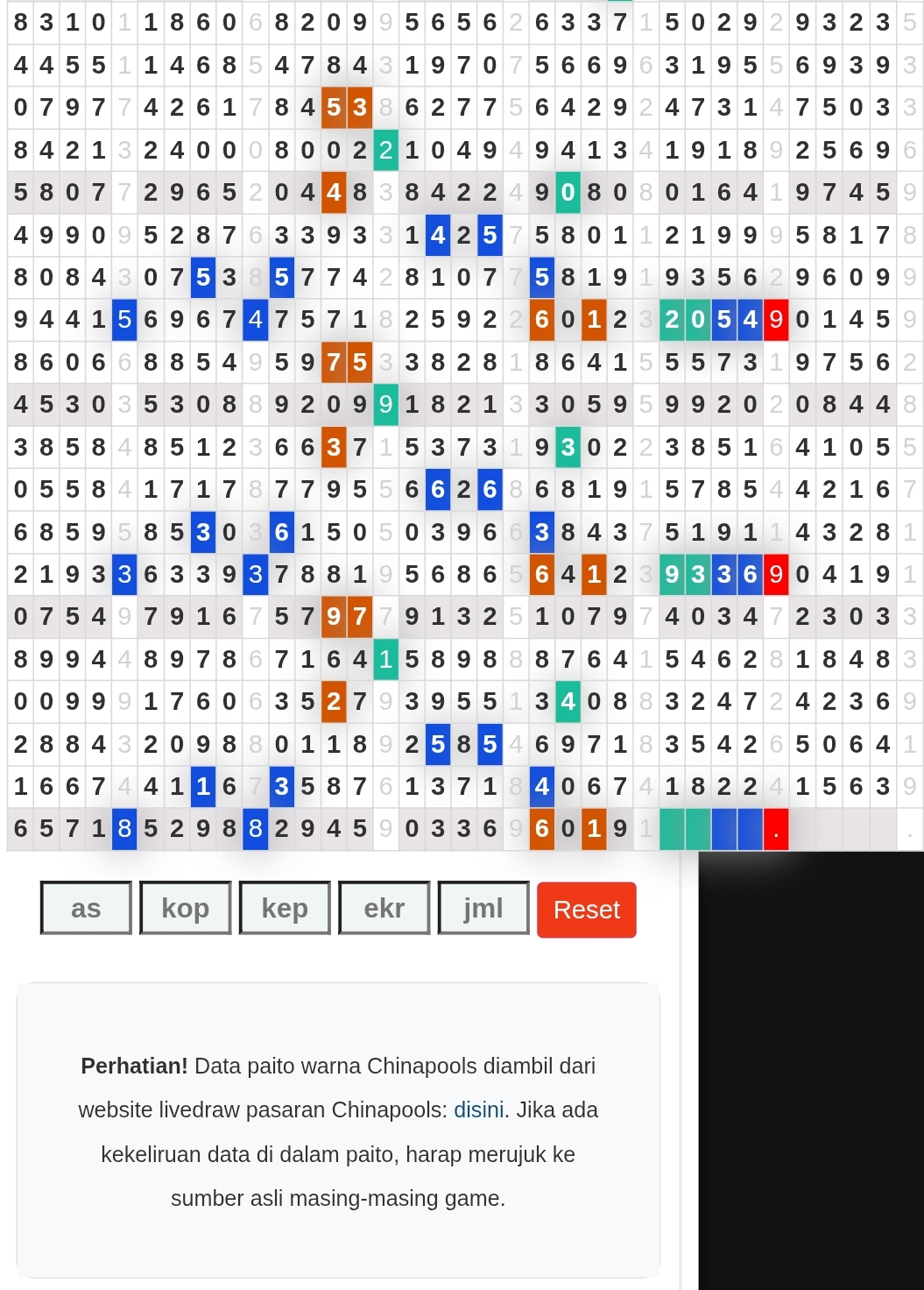 Prediksi Chinapools Senin, 08-09-2025 Merupakan Prediksi Otomatis yang menggabungkan Metode Kalender Togel Dengan LN Generator yang akurasi prediksinya sudah kita ketahui bersama. Jadi harap Maklum Jika kadang meleset Prediksi Chinapools kita. Jadikan ini sebagai perbandingan saja dan tetap Utamakan karya sendiri