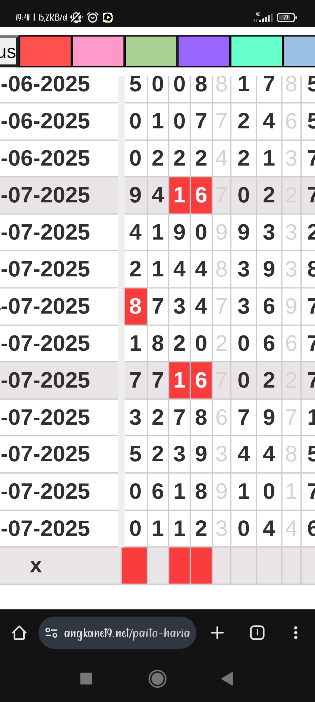 Rumus Angka Mati berdasarkan kepala harian | 07 08 09 10 18 19 20 21 29 31 32 40 42 43 49 50 51 53 60 61 62 63 64 65 71 72 73 74 75 76 82 83 84 85 87 93 95 96 98 |