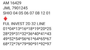 Rumus Angka Mati berdasarkan kepala harian | 08 09 10 16 17 19 20 27 28 30 31 32 37 38 39 40 41 42 43 48 49 50 51 52 54 59 60 62 63 65 74 75 76 85 86 87 96 97 98 |