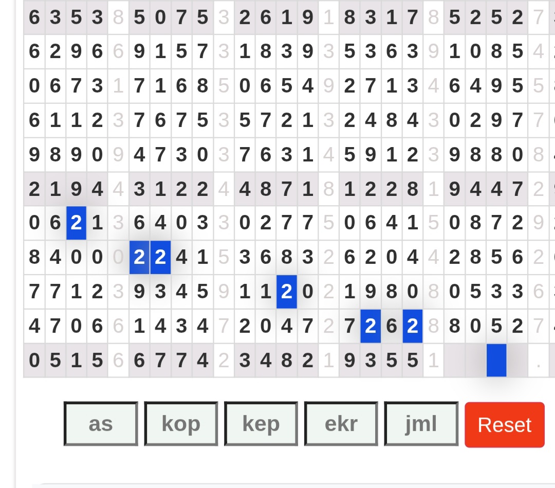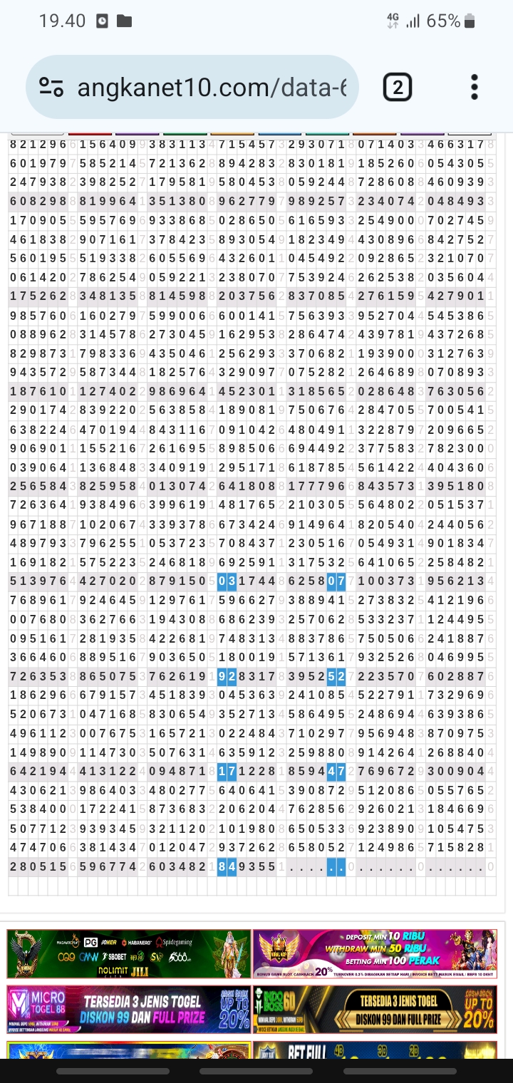 Rumus Angka Mati berdasarkan kepala harian | 04 05 06 07 08 09 10 15 16 17 18 19 21 26 27 28 29 30 32 37 39 41 42 43 52 53 54 63 64 65 75 76 83 84 86 87 94 95 97 |