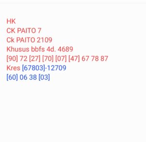 Rumus Angka Mati berdasarkan kepala harian | 05 06 08 10 15 16 17 18 19 20 21 26 27 28 29 30 32 37 38 39 40 41 43 48 52 53 54 63 64 65 74 75 76 86 87 94 95 97 98 |