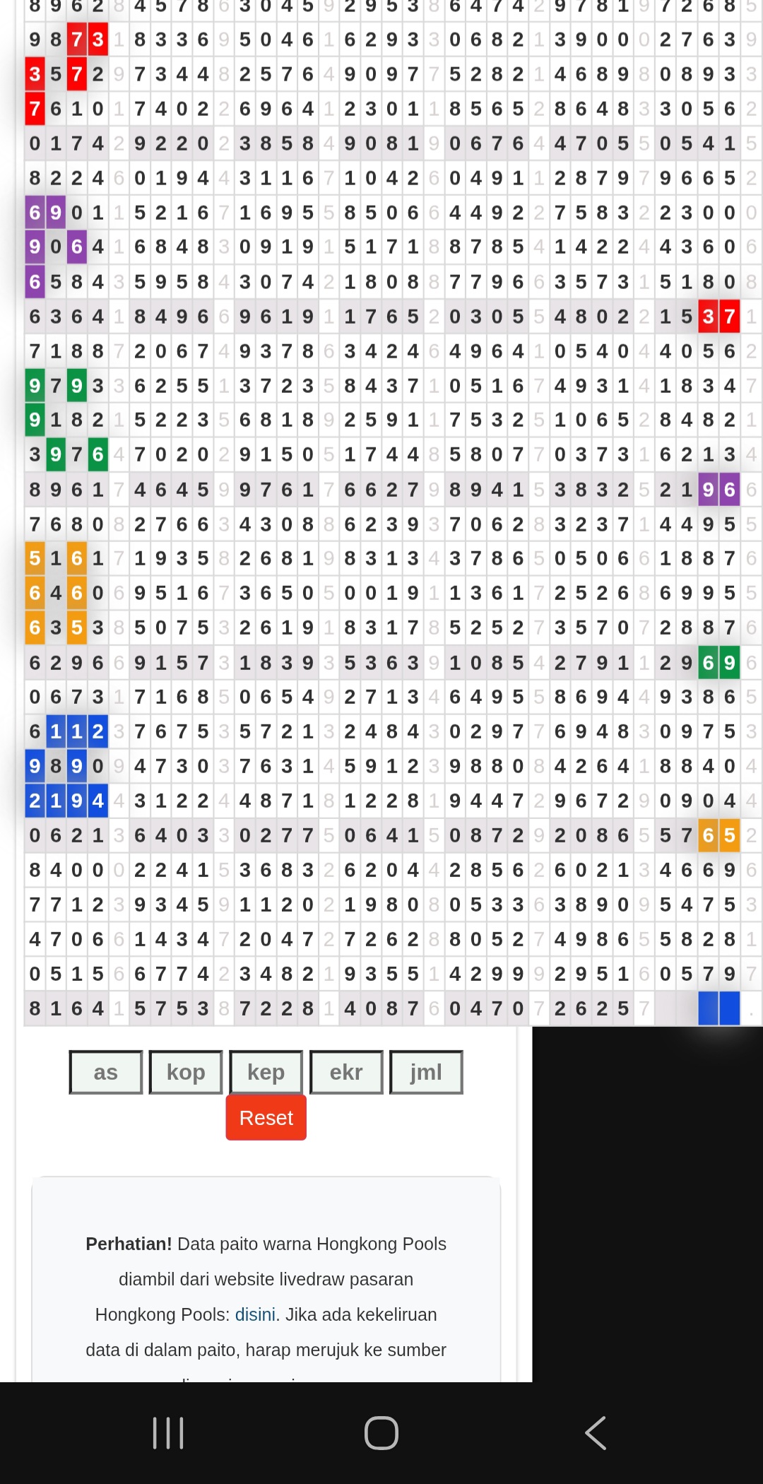 Rumus Angka Mati berdasarkan kepala harian | 05 06 08 10 15 16 17 18 19 20 21 26 27 28 29 30 32 37 38 39 40 41 43 48 52 53 54 63 64 65 74 75 76 86 87 94 95 97 98 |