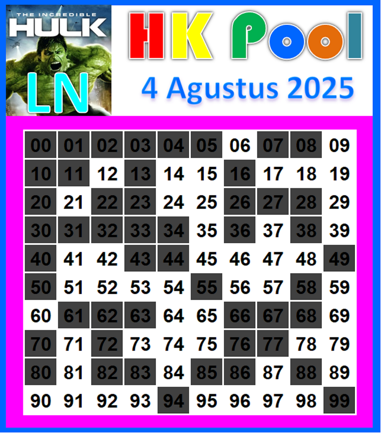 Prediksi HK Sabtu, 04-10-2025 Merupakan Prediksi Otomatis yang menggabungkan Metode Kalender Togel Dengan LN Generator yang akurasi prediksinya sudah kita ketahui bersama. Jadi harap Maklum Jika kadang meleset Prediksi HK kita. Jadikan ini sebagai perbandingan saja dan tetap Utamakan karya sendiri