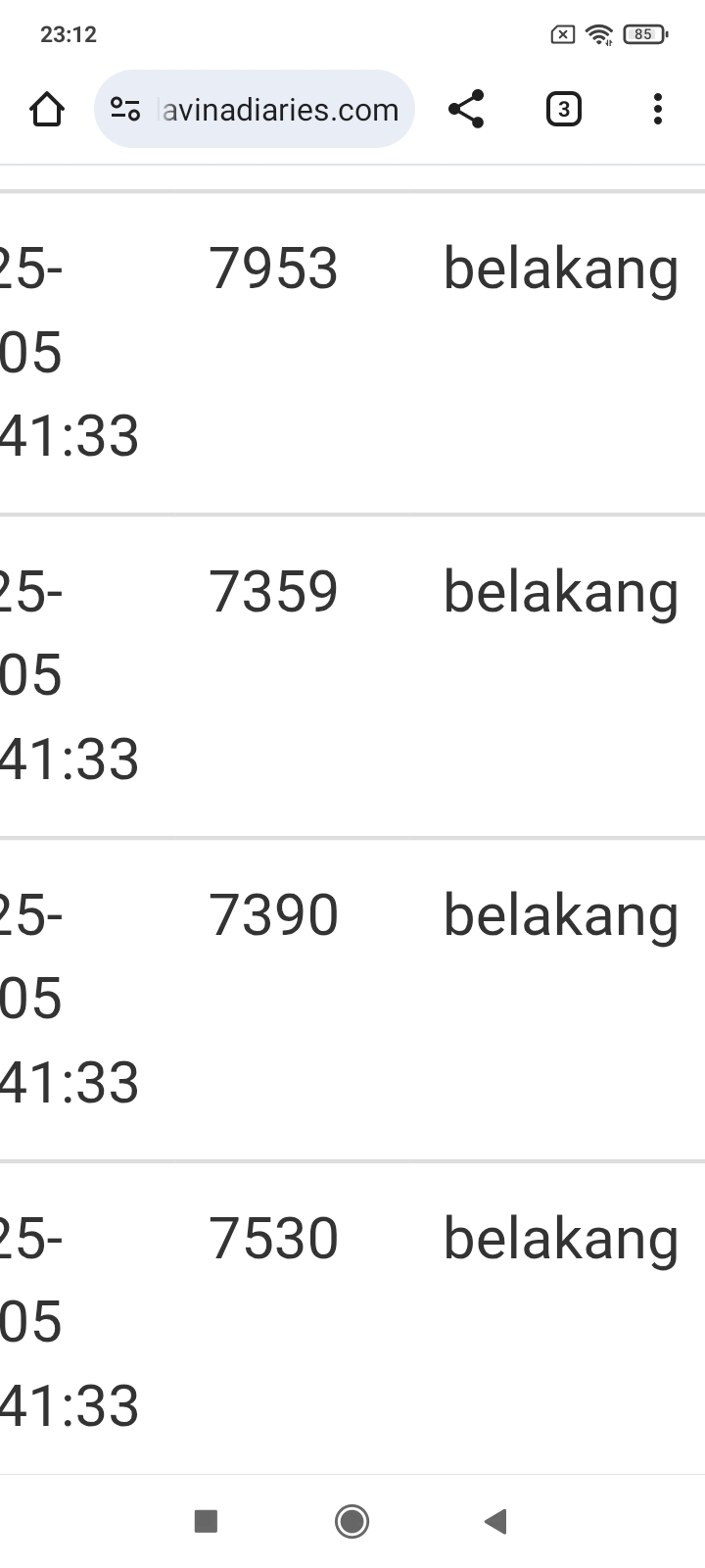 Rumus Angka Mati berdasarkan kepala harian | 05 06 08 10 15 16 17 18 19 20 21 26 27 28 29 30 32 37 38 39 40 41 43 48 52 53 54 63 64 65 74 75 76 86 87 94 95 97 98 |