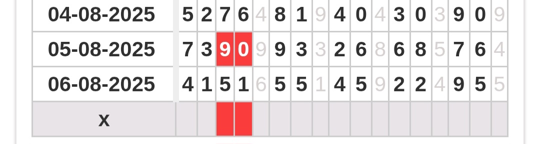 Rumus Angka Mati berdasarkan kepala harian | 07 08 09 10 18 19 20 21 29 31 32 40 42 43 49 50 51 53 60 61 62 63 64 65 71 72 73 74 75 76 82 83 84 85 87 93 95 96 98 |