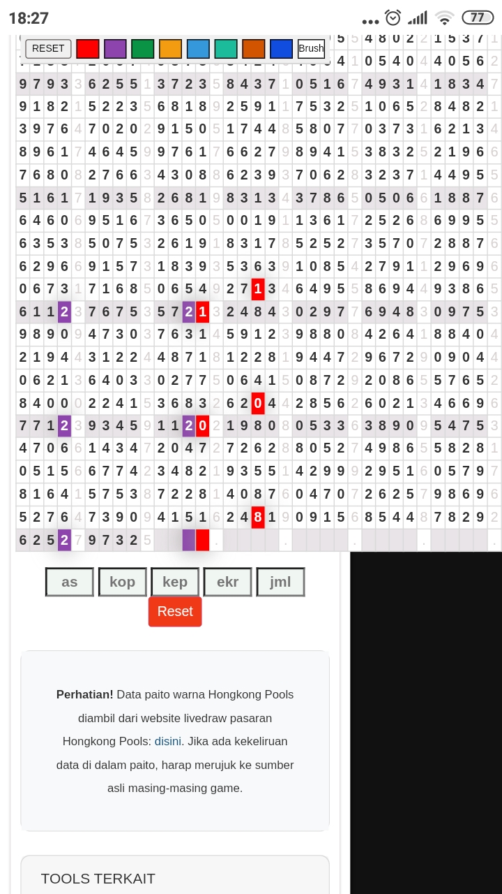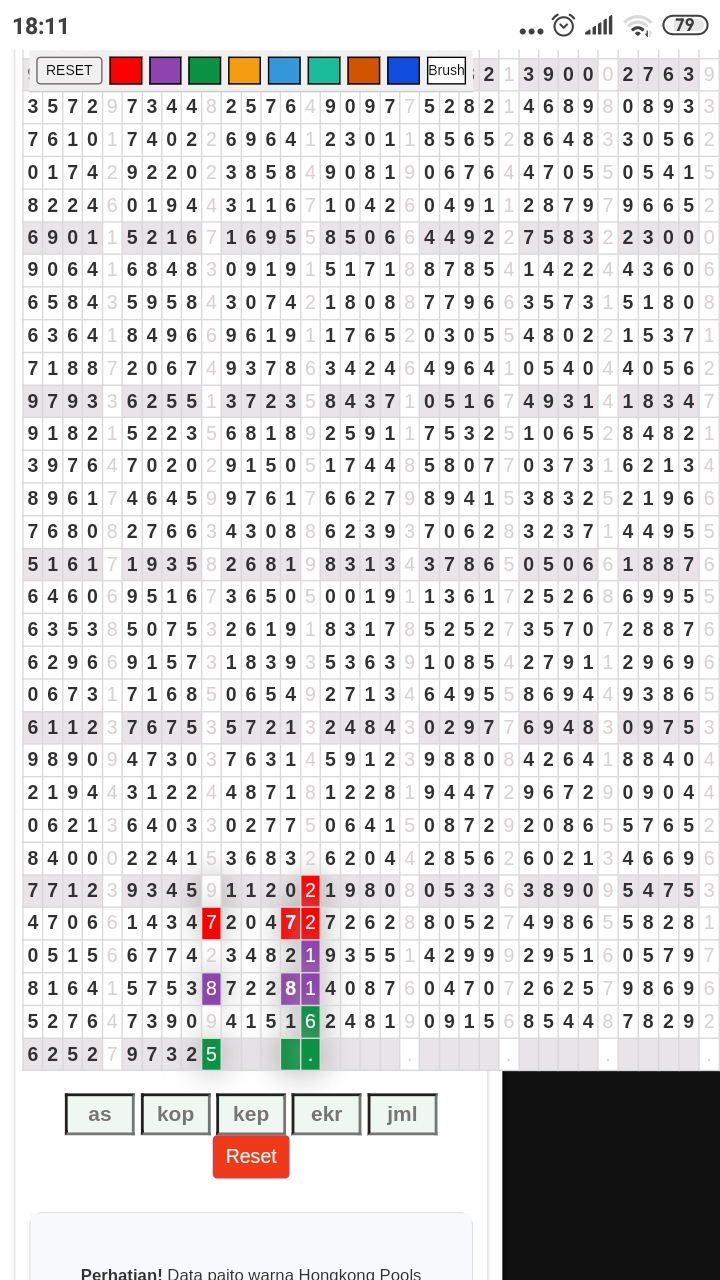 Rumus Angka Mati berdasarkan kepala harian | 05 06 08 10 15 16 17 18 19 20 21 26 27 28 29 30 32 37 38 39 40 41 43 48 52 53 54 63 64 65 74 75 76 86 87 94 95 97 98 |