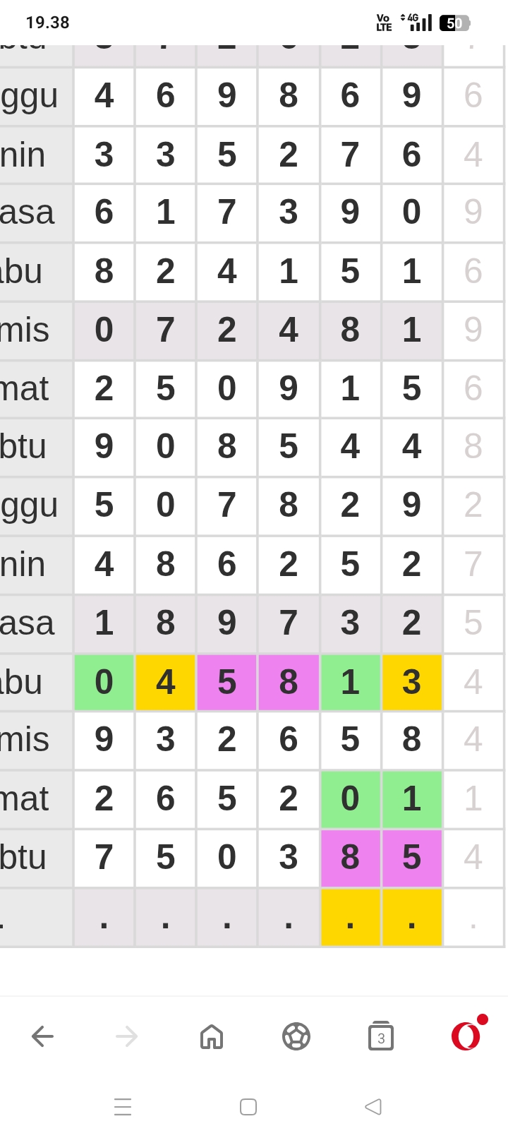 Rumus Angka Mati berdasarkan kepala harian | 04 05 06 07 08 09 10 15 16 17 18 19 21 26 27 28 29 30 32 37 39 41 42 43 52 53 54 63 64 65 75 76 83 84 86 87 94 95 97 |