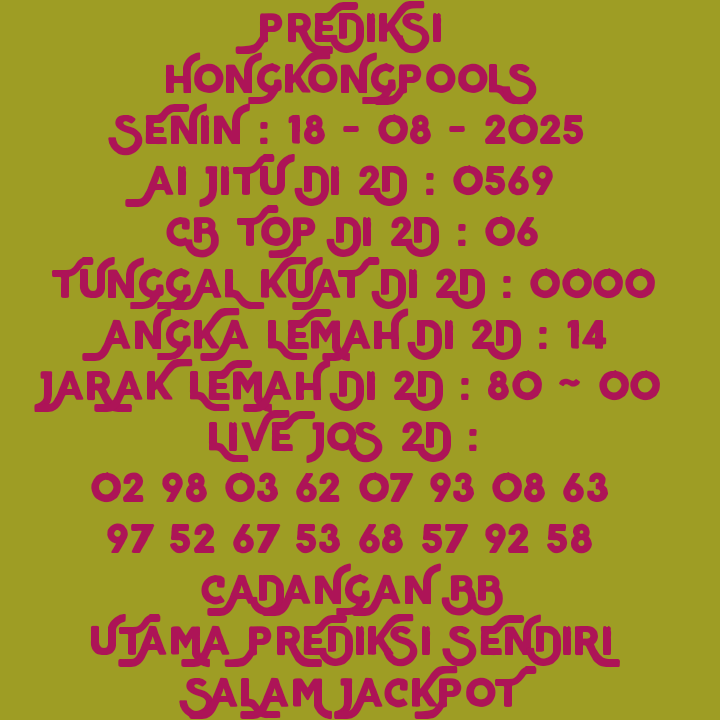 Prediksi Ini Berubah secara otomatis sesuai hari dan result pasaran masing-masing. Untuk melihat prediksi sebelumnya klik tombol nomor hitam diatas