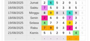 Prediksi HK Minggu, 05-10-2025 Merupakan Prediksi Otomatis yang menggabungkan Metode Kalender Togel Dengan LN Generator yang akurasi prediksinya sudah kita ketahui bersama. Jadi harap Maklum Jika kadang meleset Prediksi HK kita. Jadikan ini sebagai perbandingan saja dan tetap Utamakan karya sendiri