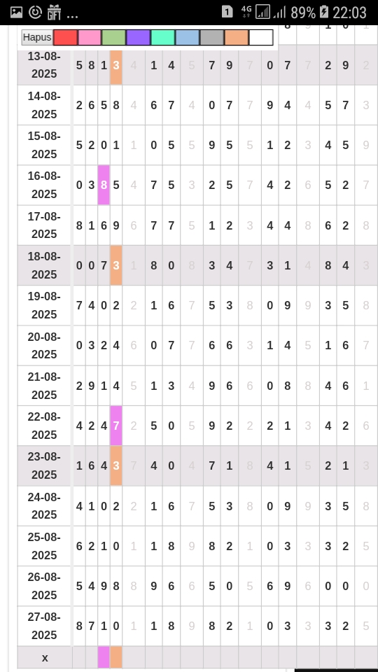 Rumus Angka Mati berdasarkan kepala harian | 08 09 10 16 17 19 20 27 28 30 31 32 37 38 39 40 41 42 43 48 49 50 51 52 54 59 60 62 63 65 74 75 76 85 86 87 96 97 98 |