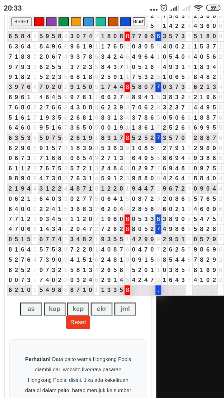 Rumus Angka Mati berdasarkan kepala harian | 05 06 08 10 15 16 17 18 19 20 21 26 27 28 29 30 32 37 38 39 40 41 43 48 52 53 54 63 64 65 74 75 76 86 87 94 95 97 98 |