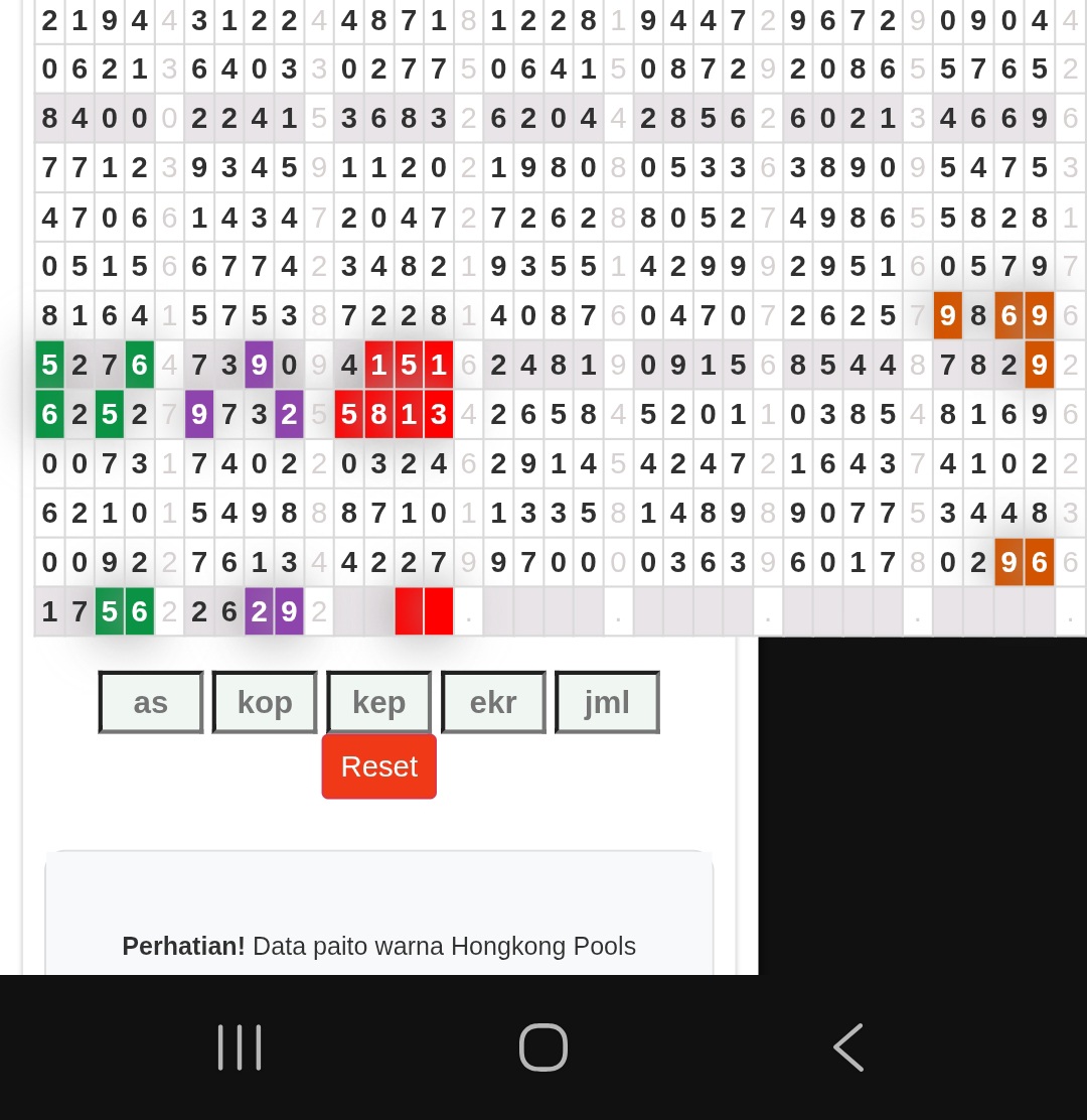 Rumus Angka Mati berdasarkan kepala harian | 05 06 08 10 15 16 17 18 19 20 21 26 27 28 29 30 32 37 38 39 40 41 43 48 52 53 54 63 64 65 74 75 76 86 87 94 95 97 98 |