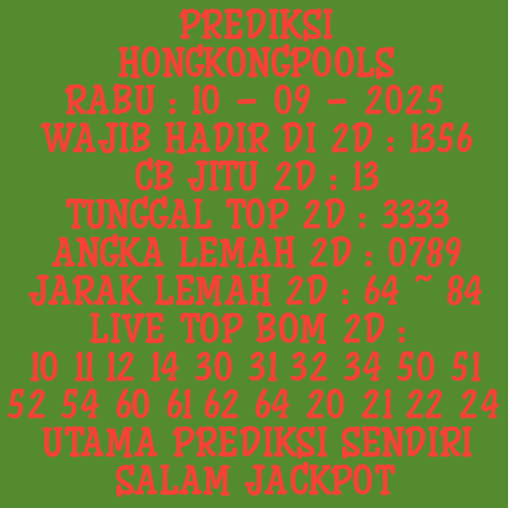 Prediksi HK Sabtu, 04-10-2025 Merupakan Prediksi Otomatis yang menggabungkan Metode Kalender Togel Dengan LN Generator yang akurasi prediksinya sudah kita ketahui bersama. Jadi harap Maklum Jika kadang meleset Prediksi HK kita. Jadikan ini sebagai perbandingan saja dan tetap Utamakan karya sendiri