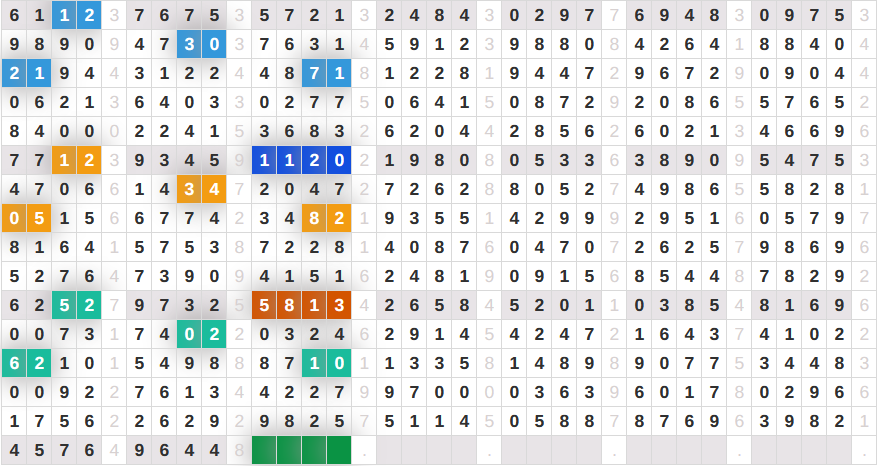 Rumus Angka Mati berdasarkan kepala harian | 05 06 08 10 15 16 17 18 19 20 21 26 27 28 29 30 32 37 38 39 40 41 43 48 52 53 54 63 64 65 74 75 76 86 87 94 95 97 98 |