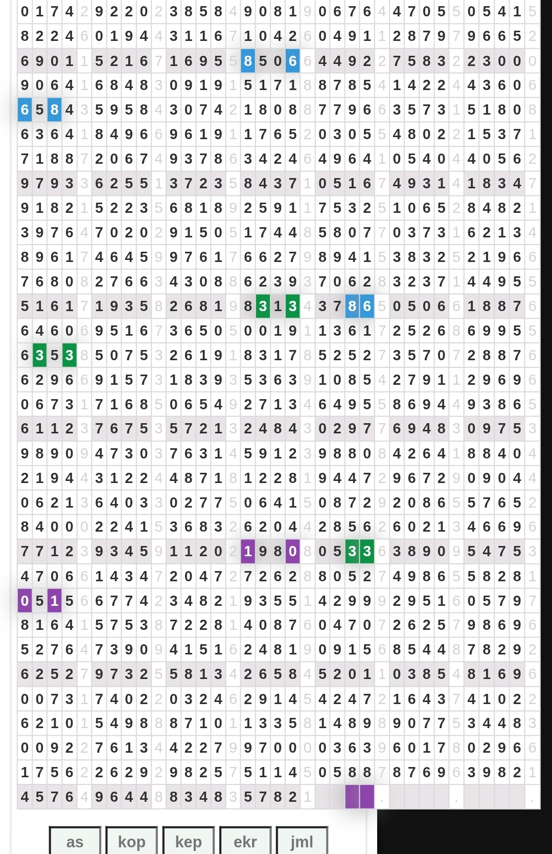 Rumus Angka Mati berdasarkan kepala harian | 04 05 06 07 08 09 10 15 16 17 18 19 21 26 27 28 29 30 32 37 39 41 42 43 52 53 54 63 64 65 75 76 83 84 86 87 94 95 97 |