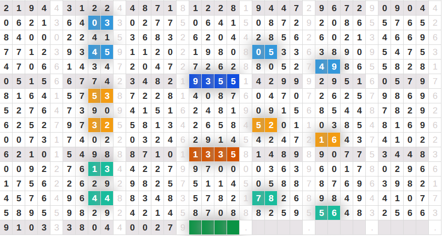 Rumus Angka Mati berdasarkan kepala harian | 04 05 06 07 08 09 10 15 16 17 18 19 21 26 27 28 29 30 32 37 39 41 42 43 52 53 54 63 64 65 75 76 83 84 86 87 94 95 97 |