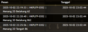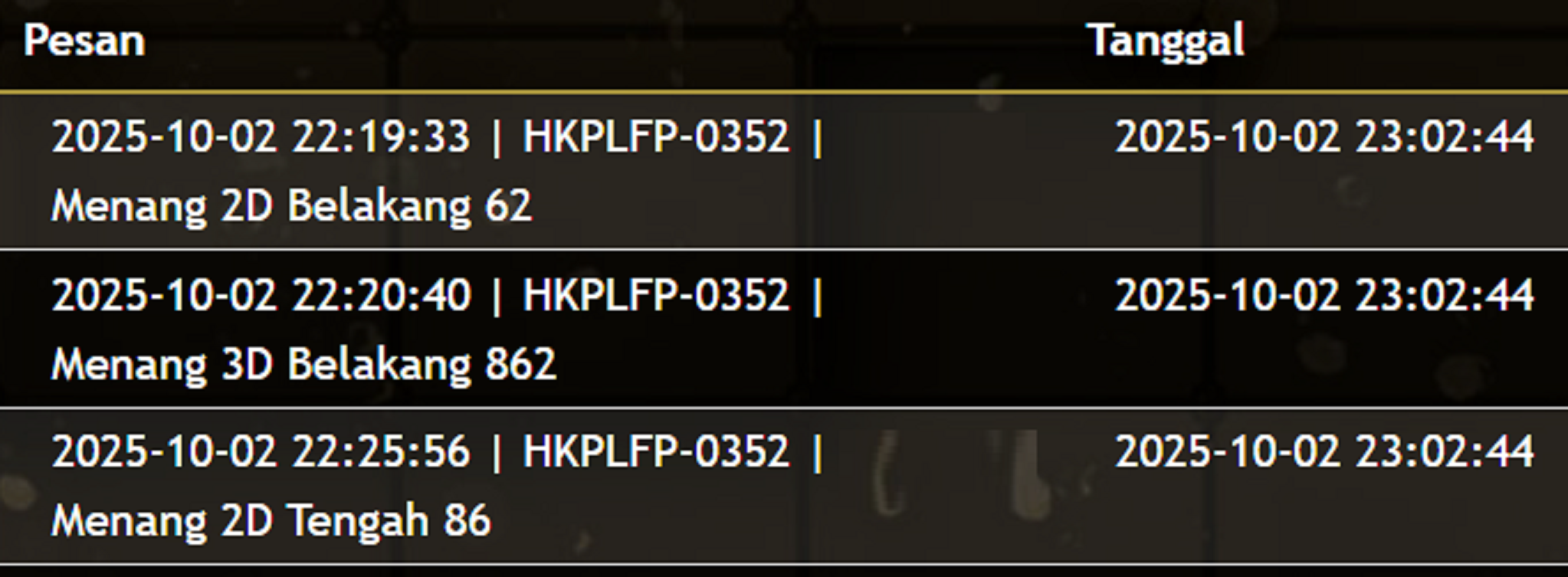 Prediksi HK Jumat, 03-10-2025 Merupakan Prediksi Otomatis yang menggabungkan Metode Kalender Togel Dengan LN Generator yang akurasi prediksinya sudah kita ketahui bersama. Jadi harap Maklum Jika kadang meleset Prediksi HK kita. Jadikan ini sebagai perbandingan saja dan tetap Utamakan karya sendiri