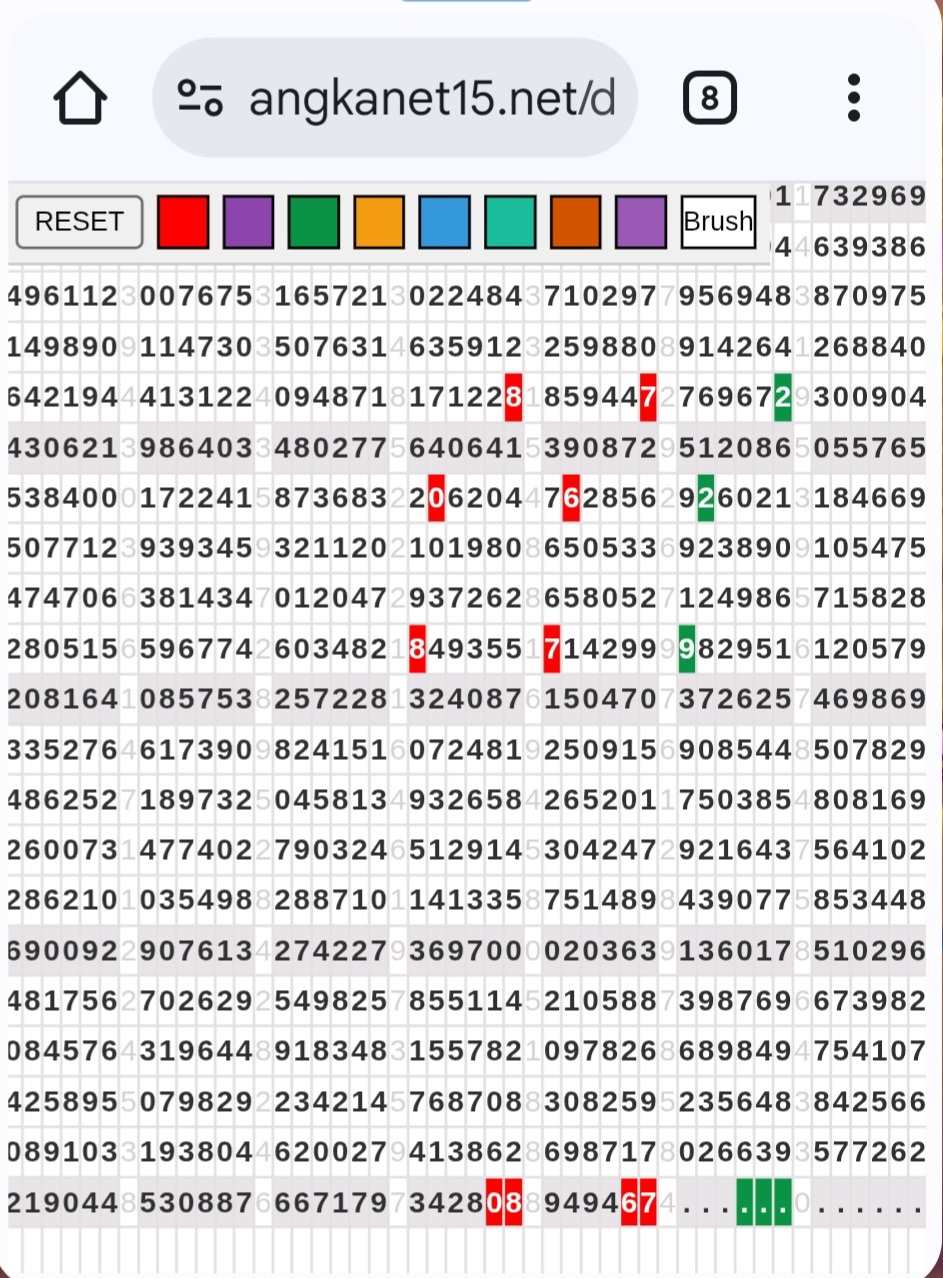Rumus Angka Mati berdasarkan kepala harian | 04 05 06 07 08 09 10 15 16 17 18 19 21 26 27 28 29 30 32 37 39 41 42 43 52 53 54 63 64 65 75 76 83 84 86 87 94 95 97 |