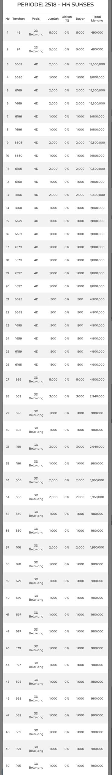 Rumus Angka Mati berdasarkan kepala harian | 04 05 06 07 08 09 10 15 16 17 18 19 21 26 27 28 29 30 32 37 39 41 42 43 52 53 54 63 64 65 75 76 83 84 86 87 94 95 97 |