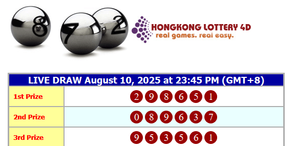 Prediksi HK Lottery 4D Jumat, 10-10-2025 Merupakan Prediksi Otomatis yang menggabungkan Metode Kalender Togel Dengan LN Generator yang akurasi prediksinya sudah kita ketahui bersama. Jadi harap Maklum Jika kadang meleset Prediksi HK Lottery 4D kita. Jadikan ini sebagai perbandingan saja dan tetap Utamakan karya sendiri