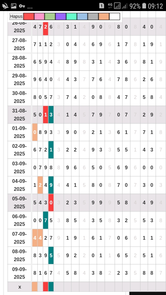 Rumus Angka Mati berdasarkan kepala harian | 07 08 09 10 18 19 20 21 31 32 38 39 40 42 49 50 51 52 53 54 59 60 61 62 63 64 65 71 72 73 74 76 82 84 85 87 96 97 98 |