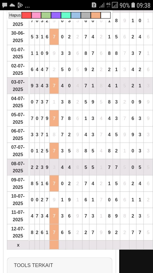 Rumus Angka Mati berdasarkan kepala harian | 05 06 08 10 15 16 17 18 19 20 21 26 27 28 29 30 32 37 38 39 40 41 43 48 52 53 54 63 64 65 74 75 76 86 87 94 95 97 98 |