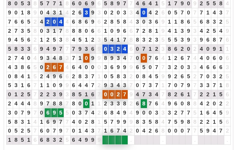 Rumus Angka Mati berdasarkan kepala harian | 07 08 09 10 18 19 20 21 31 32 38 39 40 42 49 50 51 52 53 54 59 60 61 62 63 64 65 71 72 73 74 76 82 84 85 87 96 97 98 |