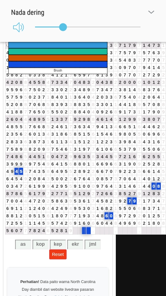 Prediksi North Carolina Day Jumat, 03-10-2025 Merupakan Prediksi Otomatis yang menggabungkan Metode Kalender Togel Dengan LN Generator yang akurasi prediksinya sudah kita ketahui bersama. Jadi harap Maklum Jika kadang meleset Prediksi North Carolina Day kita. Jadikan ini sebagai perbandingan saja dan tetap Utamakan karya sendiri