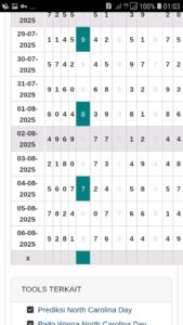 Prediksi North Carolina Day Jumat, 03-10-2025 | |