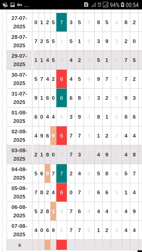 Rumus Angka Mati berdasarkan kepala harian | 05 06 08 10 15 16 17 18 19 20 21 26 27 28 29 30 32 37 38 39 40 41 43 48 52 53 54 63 64 65 74 75 76 86 87 94 95 97 98 |