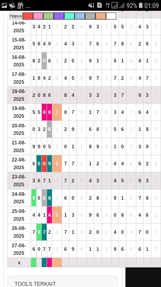Rumus Angka Mati berdasarkan kepala harian | 05 06 08 09 16 17 19 20 21 26 27 28 29 30 31 32 37 38 39 40 41 43 48 49 51 52 54 59 63 64 65 74 75 76 85 86 87 97 98 |