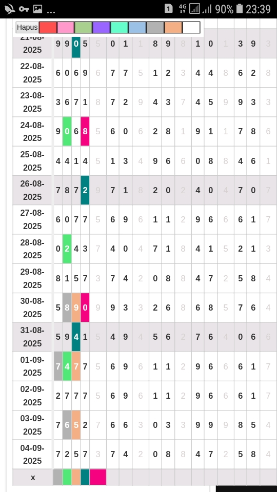 Rumus Angka Mati berdasarkan kepala harian | 04 05 06 07 08 09 10 15 16 17 18 21 26 28 29 30 31 32 41 42 43 52 53 54 64 65 72 73 75 76 83 84 86 93 94 95 96 97 98 |