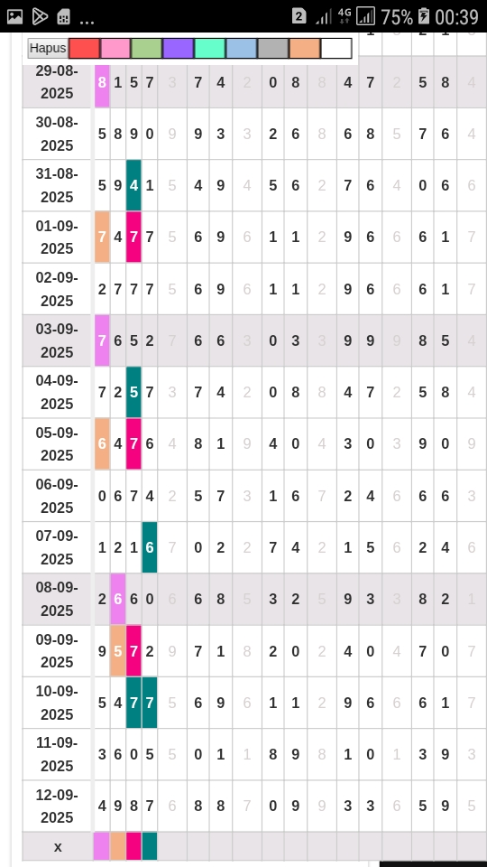 Rumus Angka Mati berdasarkan kepala harian | 04 05 06 07 08 09 10 15 16 17 18 21 26 28 29 30 31 32 41 42 43 52 53 54 64 65 72 73 75 76 83 84 86 93 94 95 96 97 98 |