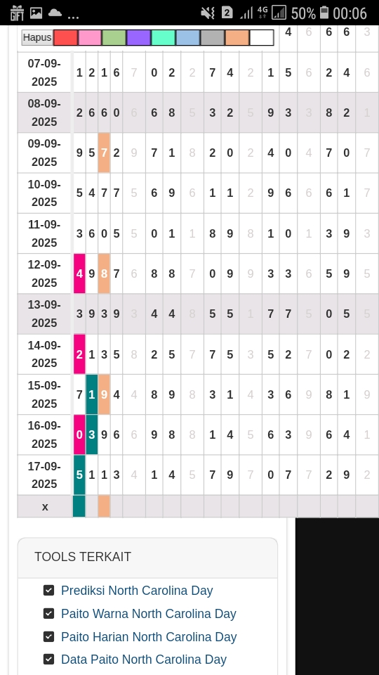 Prediksi North Carolina Day Minggu, 05-10-2025 | |