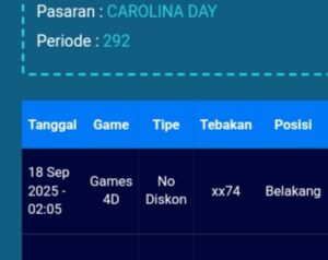 Prediksi North Carolina Day Sabtu, 04-10-2025 Merupakan Prediksi Otomatis yang menggabungkan Metode Kalender Togel Dengan LN Generator yang akurasi prediksinya sudah kita ketahui bersama. Jadi harap Maklum Jika kadang meleset Prediksi North Carolina Day kita. Jadikan ini sebagai perbandingan saja dan tetap Utamakan karya sendiri
