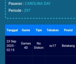 Prediksi North Carolina Day Sabtu, 04-10-2025 Merupakan Prediksi Otomatis yang menggabungkan Metode Kalender Togel Dengan LN Generator yang akurasi prediksinya sudah kita ketahui bersama. Jadi harap Maklum Jika kadang meleset Prediksi North Carolina Day kita. Jadikan ini sebagai perbandingan saja dan tetap Utamakan karya sendiri