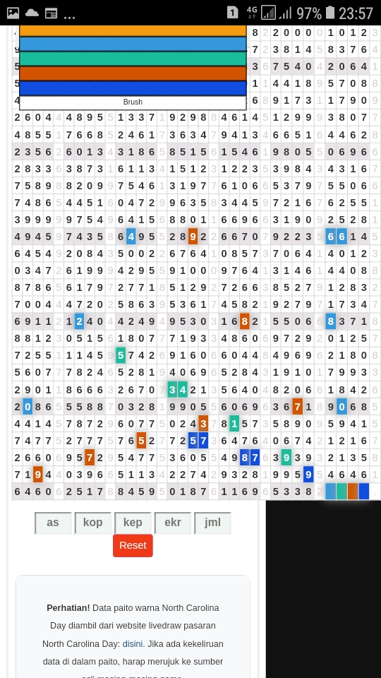Prediksi North Carolina Day Minggu, 05-10-2025 Merupakan Prediksi Otomatis yang menggabungkan Metode Kalender Togel Dengan LN Generator yang akurasi prediksinya sudah kita ketahui bersama. Jadi harap Maklum Jika kadang meleset Prediksi North Carolina Day kita. Jadikan ini sebagai perbandingan saja dan tetap Utamakan karya sendiri