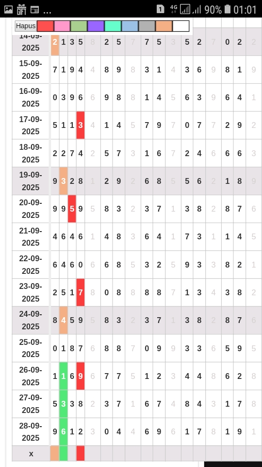 Rumus Kontrol 4 berdasarkan kepala harian | 1236780 1456790 |