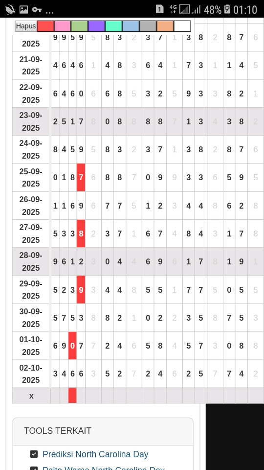 Prediksi North Carolina Day Sabtu, 04-10-2025 | |