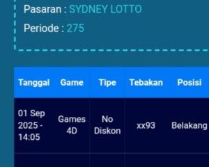 Prediksi Sydney Lotto Kamis, 02-10-2025 Merupakan Prediksi Otomatis yang menggabungkan Metode Kalender Togel Dengan LN Generator yang akurasi prediksinya sudah kita ketahui bersama. Jadi harap Maklum Jika kadang meleset Prediksi Sydney Lotto kita. Jadikan ini sebagai perbandingan saja dan tetap Utamakan karya sendiri