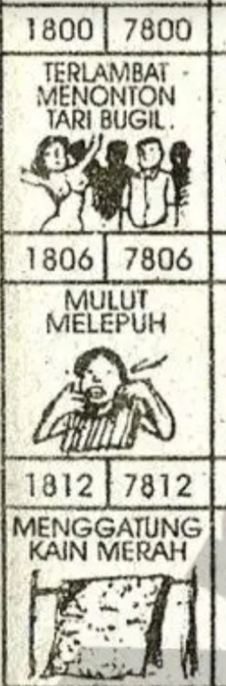 Rumus Angka Mati berdasarkan kepala harian | 07 08 09 10 19 20 21 27 28 31 38 39 40 41 42 43 48 49 50 51 52 53 54 59 60 61 62 63 65 71 73 74 76 85 86 87 96 97 98 |