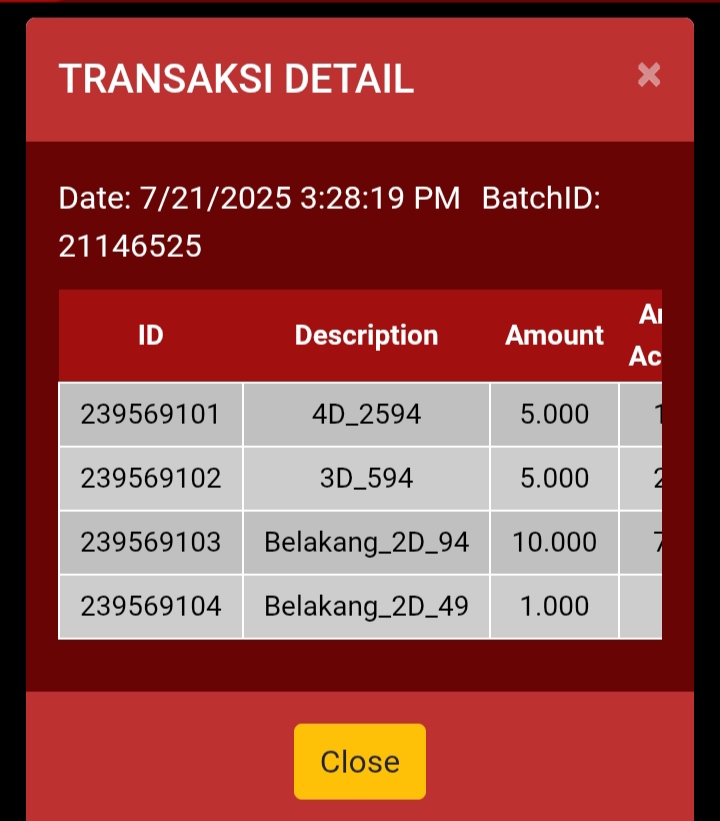 Rumus Angka Mati berdasarkan kepala harian | 05 06 08 10 15 16 17 18 19 20 21 26 27 28 29 30 32 37 38 39 40 41 43 48 52 53 54 63 64 65 74 75 76 86 87 94 95 97 98 |