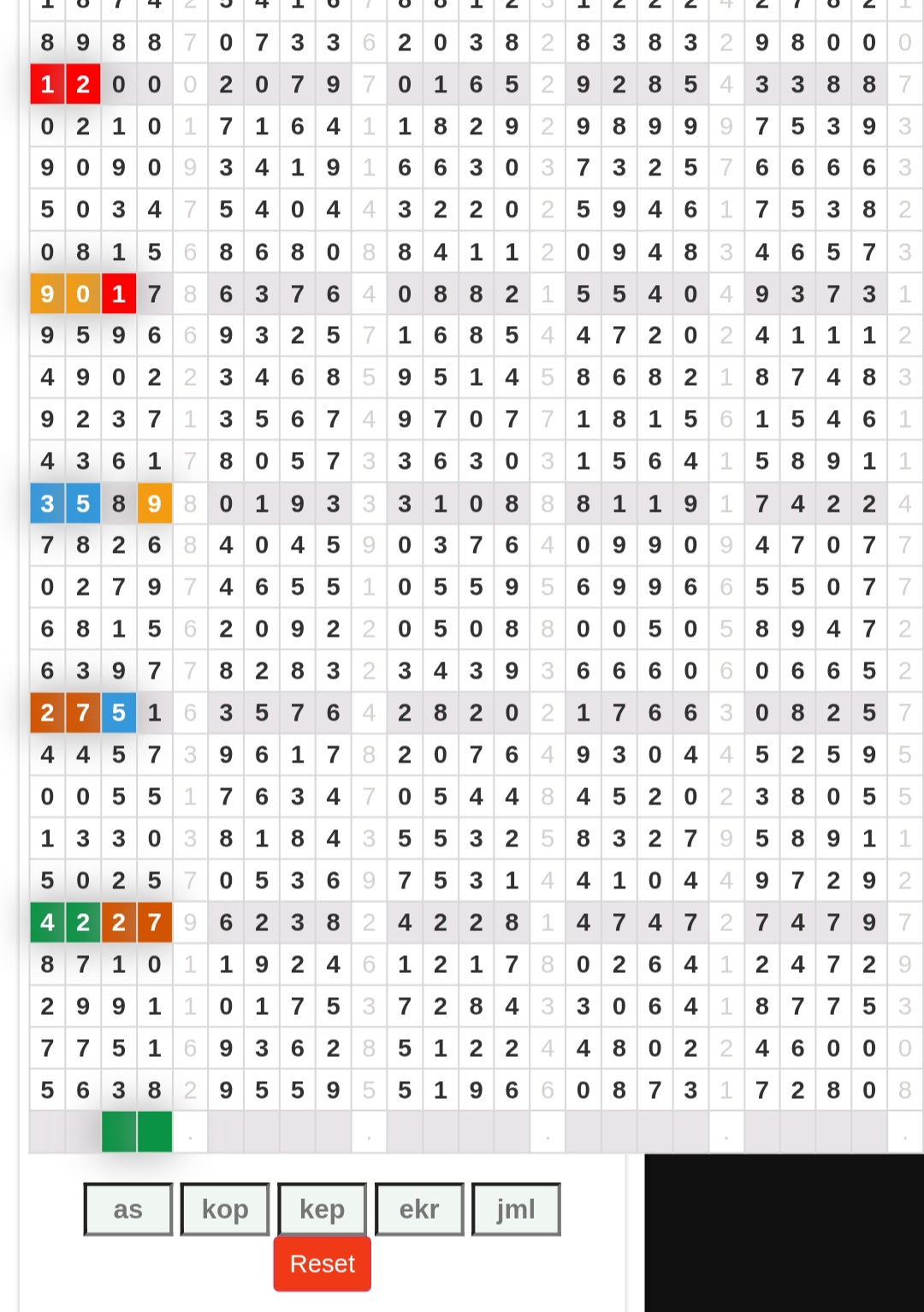 Rumus Kontrol 1 berdasarkan As harian | 4567890 1234567 1234890 0123569 |