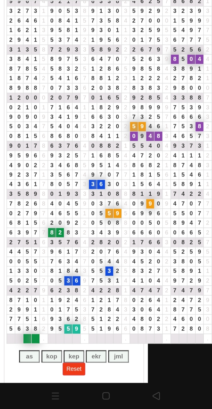 Rumus Kontrol 1 berdasarkan As harian | 1567890 2345678 1234590 0124589 |