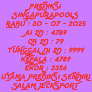 Prediksi Singapore Minggu, 05-10-2025 Merupakan Prediksi Otomatis yang menggabungkan Metode Kalender Togel Dengan LN Generator yang akurasi prediksinya sudah kita ketahui bersama. Jadi harap Maklum Jika kadang meleset Prediksi Singapore kita. Jadikan ini sebagai perbandingan saja dan tetap Utamakan karya sendiri