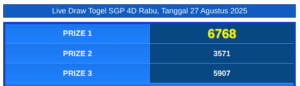 Prediksi Singapore Minggu, 24-08-2025 Merupakan Prediksi Otomatis yang menggabungkan Metode Kalender Togel Dengan LN Generator yang akurasi prediksinya sudah kita ketahui bersama. Jadi harap Maklum Jika kadang meleset Prediksi Singapore kita. Jadikan ini sebagai perbandingan saja dan tetap Utamakan karya sendiri