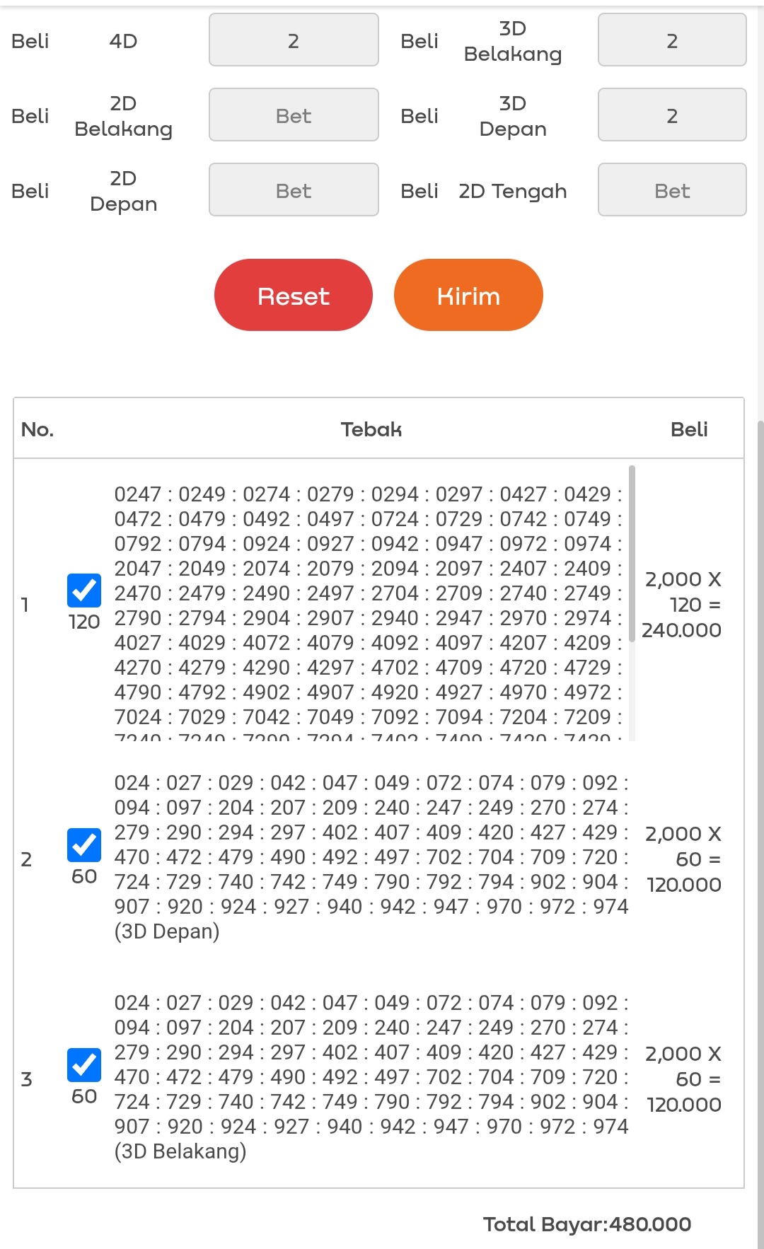 Rumus Kontrol 4 berdasarkan kepala harian | 3457890 1234678 |