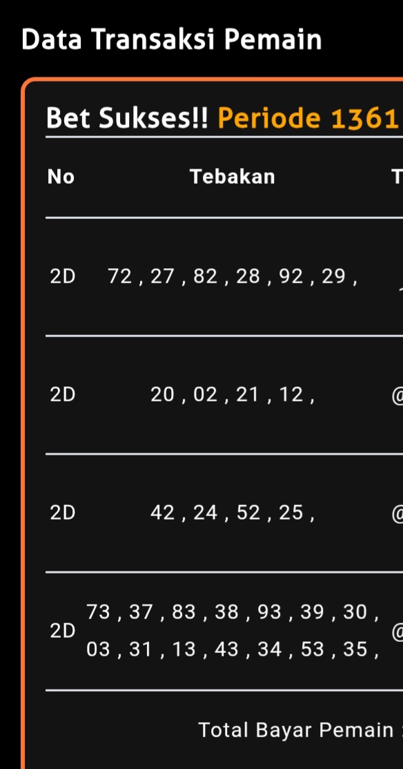 Rumus Angka Mati berdasarkan kepala harian | 07 08 09 10 18 19 20 21 29 31 32 40 42 43 49 50 51 53 60 61 62 63 64 65 71 72 73 74 75 76 82 83 84 85 87 93 95 96 98 |