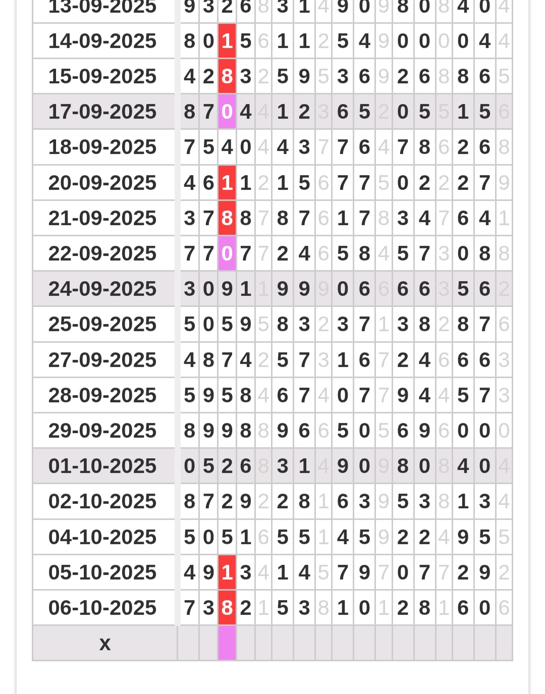 Rumus Angka Mati berdasarkan kepala harian | 07 08 09 10 18 19 20 21 29 31 32 40 42 43 49 50 51 53 60 61 62 63 64 65 71 72 73 74 75 76 82 83 84 85 87 93 95 96 98 |